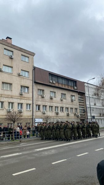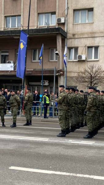 Ushtarët e policët janë rreshtuar në rrugën “Luan Haradinaj” dhe po presin krerët institucionalë. Bashkë me ta po presin edhe qytetarët që kanë dalë për të parë parakalimin.