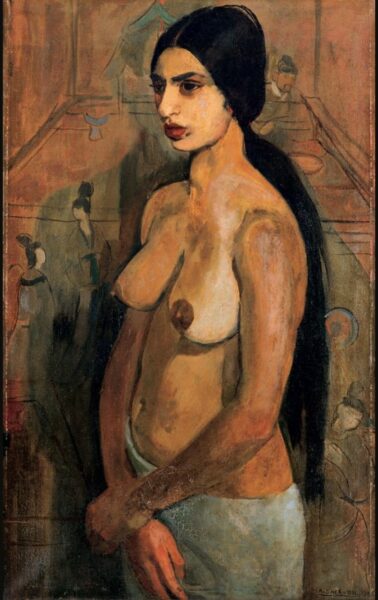 Ngjashëm, Amrita Sher-Gil u përjashtua nga shkolla për këmbënguljen e saj për të pikturuar lakuriqësi. Më vonë ajo realizoi Self-Portrait As a Tahitian (1934), një vepër që mund të shihet si homazh për Gauguin-in ose si kritikë ndaj vështrimit të tij kolonial. Vështrimi i pamëshirshëm mashkullor rikthehet në punën e Emma Amos, e cila sfidoi kanunin e bardhë e mashkullor. Në veprën Work Suit (1994), ajo “vesh” trupin e zhveshur të Lucian Freud-it si kostum – një deklaratë therëse dhe satirike: “A është kjo ajo që do të thotë të jesh artist i madh?” Amos, e ndarë nga jeta në vitin 2020, ende nuk ka marrë vlerësimin e merituar.