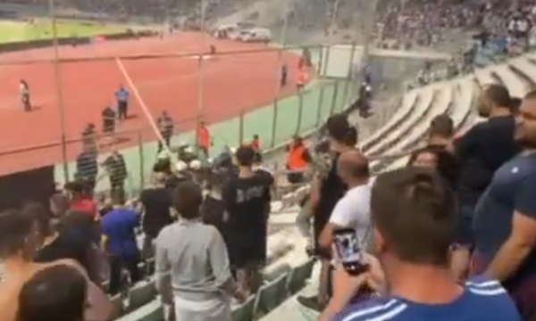 Por, situata është tensionuar edhe më shumë pas përfundimit të pjesës së parë, pasi ka ndodhur edhe një përleshje mes tifozëve kosovarë dhe atyre grekë.