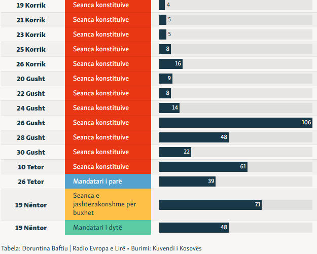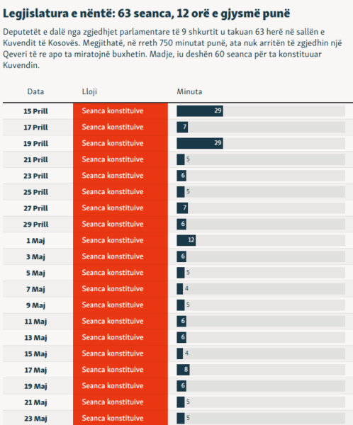 Përveç 60 takimeve në sallën e Kuvendit të Kosovës për konstituim, këta deputetë u mblodhën vetëm edhe tri herë.