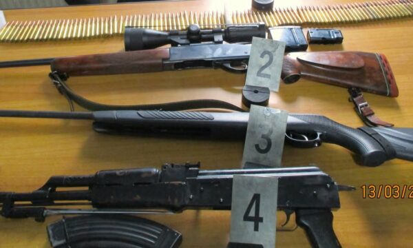 “ Një (1) armë e gjatë AK 47 me një karikator e kalibrit 7.62×39 mm, një pushkë gjahu kalibrit e markës Remington e kalibrit 280 rem, njëqind e dhjetë (110) fishekë të kalibrit 280 rem, dhe një (1) pushkë ajrore”, njofton policia.