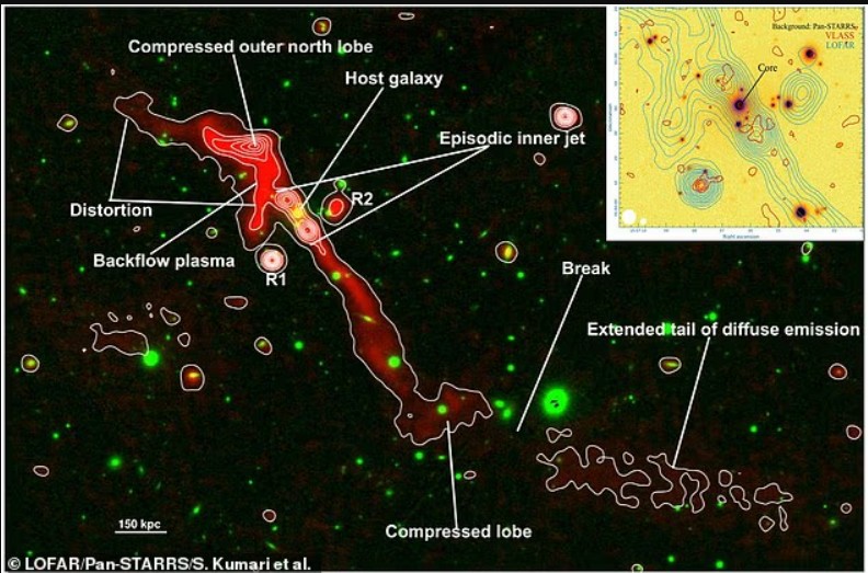 “Ky shtresëzim dramatik i rrymave të reja brenda lobeve të vjetra të shteruara është shenja tipike e një bërthame galaktike aktive episodike,” shpjegon Dr. Kumari, “një galaktikë ku ‘motori’ qendror ndizet dhe fiket përgjatë shkallëve kohore kozmike.”