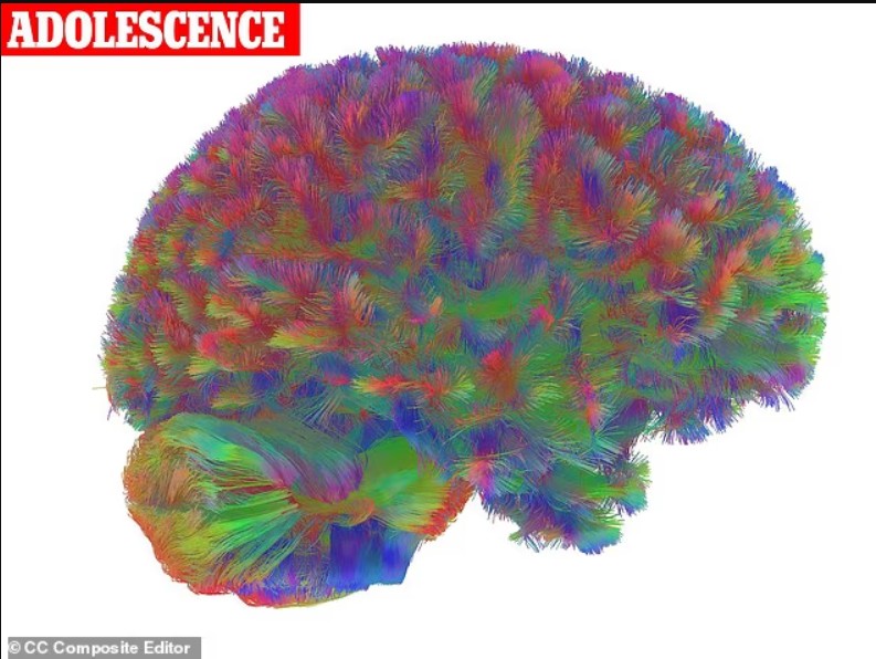 Adoleshenca (9–32 vjeç): Ndërkohë që materiali i bardhë rritet, ndryshimet më të mëdha ndodhin në lidhjet mes neuroneve. Arkitektura e trurit bëhet më e rafinuar dhe efikase. Kjo fazë shënohet nga përmirësimi i performancës njohëse dhe rritja e efikasitetit të komunikimit midis rajoneve të trurit.