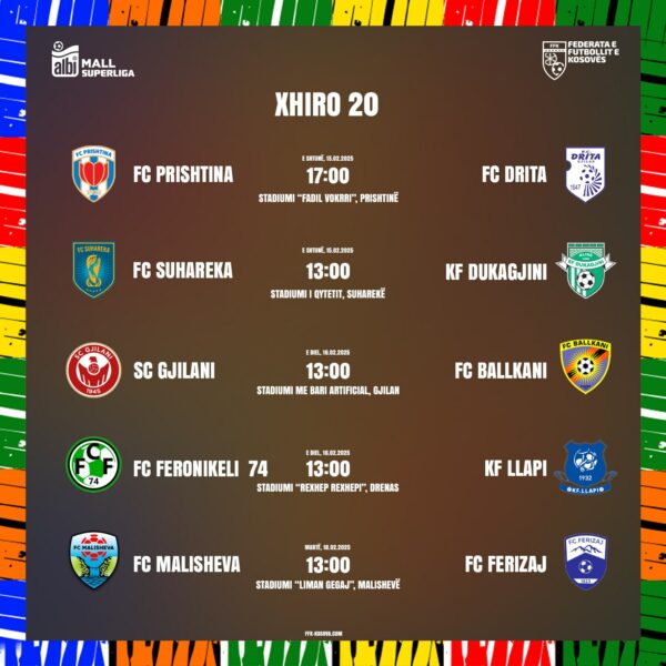 Federata e Futbollit të Kosovës e ka zbuluar sot orarin e ndeshjeve të xhiros së 20-të të Superligës.