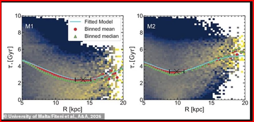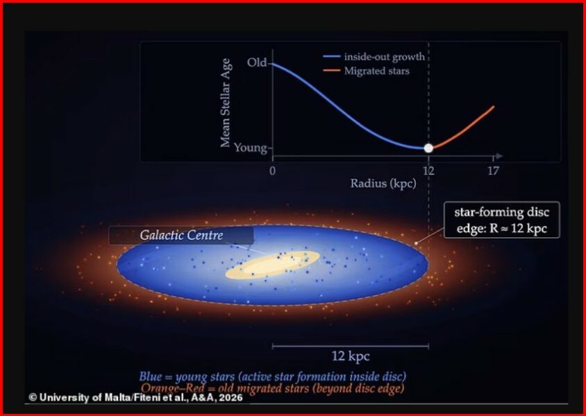 Ekipi i udhëhequr nga Karl Fiteni analizoi moshën e rreth 100 mijë yjeve. Ata zbuluan se yjet bëhen gjithnjë e më të rinj sa më larg qendrës, deri në një pikë kritike midis 35 dhe 40 mijë vite dritë.