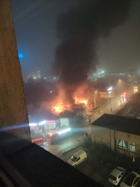 Zjarr afër stacionit të autobusëve në Prizren, disa lokale kaplohen nga flakët, zjarrfikësit shihen në vendngjarje - Gazeta Express