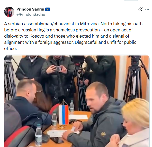 Sadriu ka shkruar se ky është një provokim i turpshëm dhe një veprim i hapur i mosbesnikërisë ndaj Kosovës.