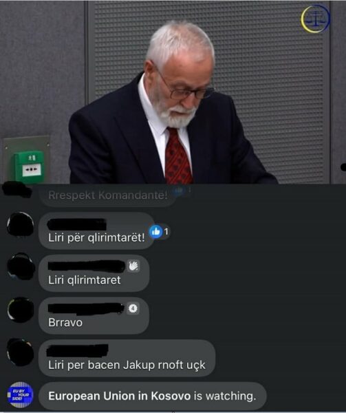 Kjo ngjarje përveçse tërhoqi vëmendje të madhe të publikut në Kosovë, mori vëmendjen edhe të Zyrës së BE-së në Kosovë, e cila po ndjek ‘live’ deklarimet e të akuzuarve në Hagë.